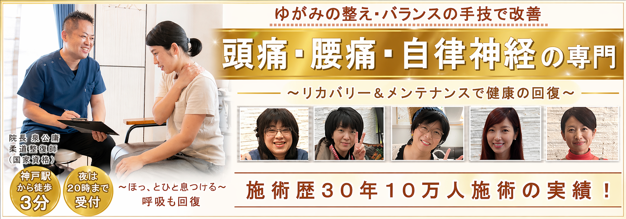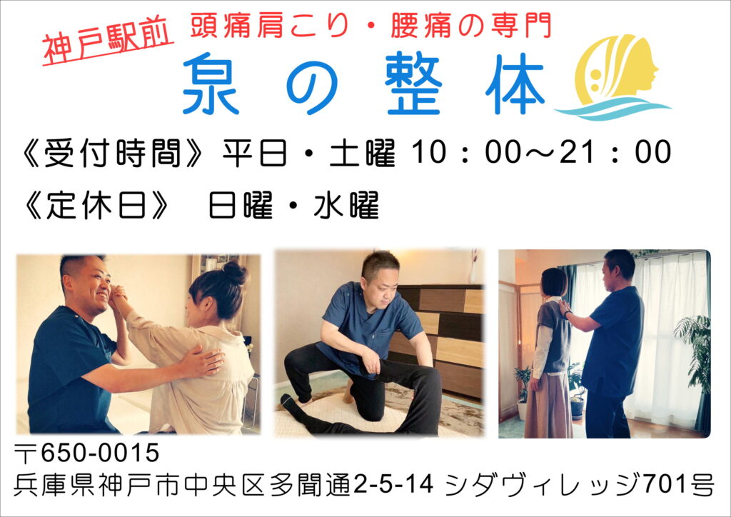 神戸市中央区の神戸駅前で頭痛・肩こり・腰痛でお悩みの方専門の整体院をしています。