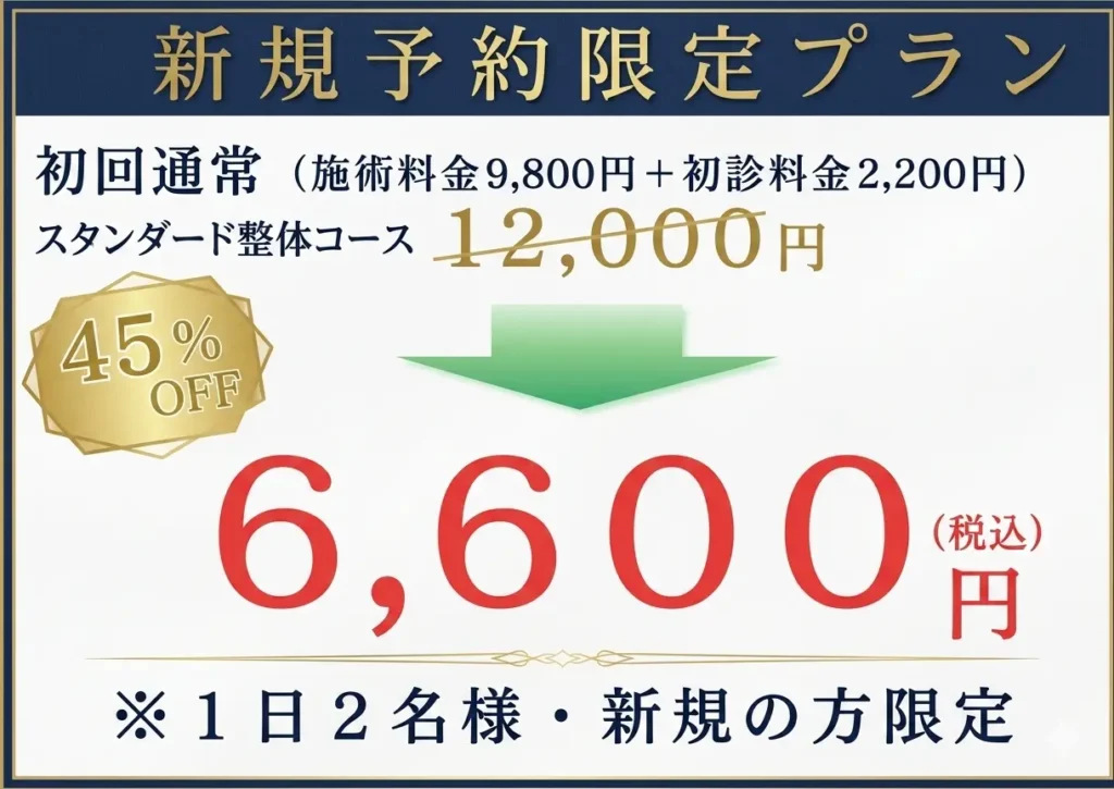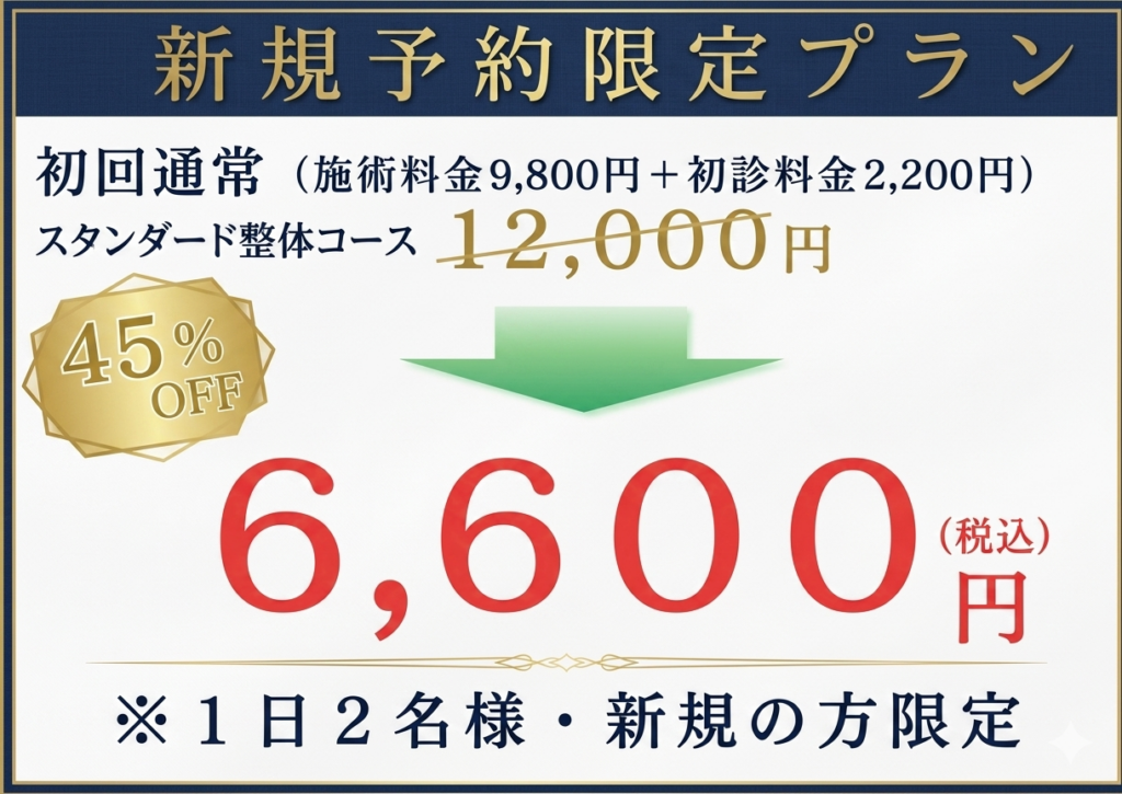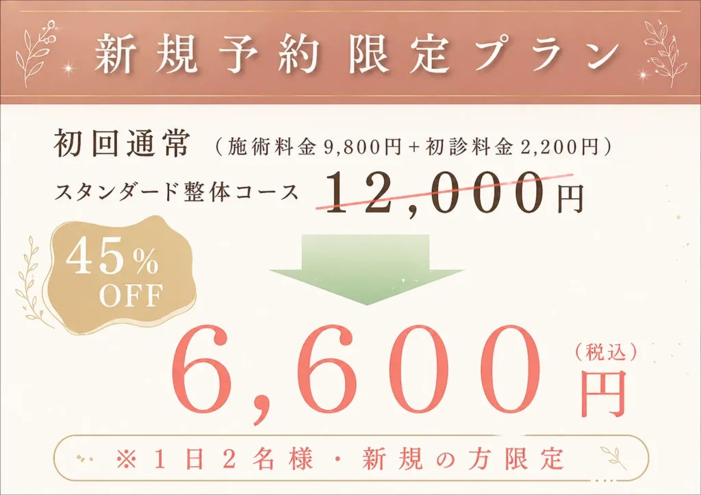 「整体を一度受けてみたいけど‥」「本当に良くなるのかな?」と不安に思う方も多くおられると思います。そんな方に向けたHP限定特典となっております。ご希望の方はLINE登録からお申し込みください。